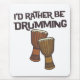 This funny gift for drummers and drum circle lovers reads "I'd rather be drumming" and features an illustration of two rope tuned djembe drums.