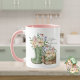 Coffee mug featuring the wording "I'd Rather Be Gardening" above a watercolor illustration of a bouquet of flowers in a pair of green wellies and a a flowers planted in a flower box. Perfect for the passionate gardener. Additional rim and handle colours and styles available.