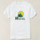 This T-shirt is perfect for a hiking enthusiast. The graphic consists of mountains with a sun in the background and prints of hiking boots across the mountains with the words " I'd Rather Be Hiking" below. This T-shirt can be personalized by adding an individual's name on the back of the T-shirt.