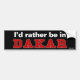 I'd Rather Be In Dakar! Are you from Dakar, Senegal? Do you have a friend or family member who loves Dakar, Senegal? If so, this "I'd Rather Be In..." bumper sticker is what you're looking for! The design features "I'd rather be in" in small white lettering at the top and "Dakar" in big red lettering at the bottom.