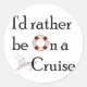 I'm a little disappointed with the printing of the 'I'd Rather Be On A Cruise' Sticker. The word 'Cruise' should be a little more to the left - the letter 'e' is cut off a little.