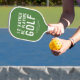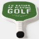 For the reluctant player who'd rather be on the golf course, this funny personalized pickleball paddle features the phrase "I'd rather be playing golf" along with customizable elements like name, team name and initial or other text on a green turf background. Make this yours and make your teammates and opponents laugh with this fun gift idea.