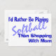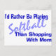 Girls who love playing the sport of softball will love these t-shirts, mousepads, mugs, tote bags, buttons, stickers and more that feature the cute softball saying, I'd rather be playing softball than shopping with mom. Great gifts for softball players.