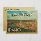 A charming and unique neo vintage Idaho Save The Date postcard with tons of mid-century retro style, featuring Snake River Canyon in Twin Falls, Idaho. Your wedding guests will be packing their bags when they receive this wonderfully hip and cool Idaho Save The Date.