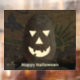 Potatoes substitute for pumpkins as Jack O'lanterns in Idaho. A potato, carved and lit in the manner of a Halloween pumpkin, sits atop a pile of spuds, set against a burlap sack. Customizable text reading, "Happy Halloween" also appears. You may change both the font and text colour.