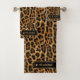 Apportez une touche de luxe à votre salle de bain avec cet ensemble chic de serviettes de bain empreintes de léopard. Le design comprend un motif léopard aux tons dorés, agrémenté d'un étiquette noir et or élégant, qui peut être personnalisé avec votre nom de famille ou votre monogramme. Élégant et pratique, ajoutez un côté sauvage glamour à votre décor de maison tout en rendant votre quotidien un peu plus indulgent. Parfait comme cadeau ou pour donner à votre propre salle de bain une amélioration design. Recherchez ID1160 pour voir d'autres produits avec cette conception et d'autres options de poster de animal.