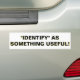 "IDENTIFY" AS SOMETHING USEFUL! BUMPER STICKER
