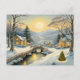 Idyllic Christmas Village with River and Bridge Postcard