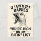 Bold, aggressive, and hilariously unhinged — this design features a furious goose mid-screech with the warning: “If I ever get rabies, you’re high on my bitin’ list.” Rendered in vintage black ink illustration style, the artwork strikes a perfect balance between chaotic humour and unapologetic attitude. Whether you’ve had enough of people’s nonsense or just love a little animal-inspired sarcasm, this piece lets your inner rage honk loud and proud. Perfect for introverts, cynics, or anyone who deeply relates to an angry goose and wants the world to know it. Makes a brilliant gift for friends who appreciate quirky, unfiltered jokes with bite. Wear it to signal you’re done tolerating foolishness — or just to get a good laugh. Goose lovers, rage quitters, and sarcasm fans: this one’s for you.