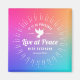 Beautiful fully editable typography emblem features this message, in white, "If it is possible live at peace with everyone. Romans 12:18" centred in white light rays circle on colourful gradient background.
