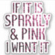 If it is Sparkly and Pink I want it Sticker. Beautiful Pink glitter sparkles text. Girly glamourous pink shiny glitters sparkles. Photo of pink sparkles not actual glitter!