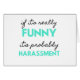 If It's Really Funny It's Probably Harassment design. This is a short funny quote which is great as a funny gag gift for HR employee. Also suitable as a Human Resource gift for coworkers.