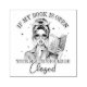 Charming illustration featuring a woman with her finger to her lips holding an open book. The colourful text reads: "If my book is open, your mouth should be closed ". This design is available on a wide variety of products.