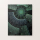 Puzzle design from "If Six Was Nine," an Apophysis fractal by Susan Wallace. Copyright © 2008, Susan Wallace. A circular labyrinthine pattern in shades of green and blue, combining geometric shapes in a complex futuristic design. This intricate fractal makes a delightfully devious jigsaw puzzle. A repeating pattern and subtle texture will provide hours of challenging entertainment for all ages.