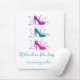 Sassy and chic If the Shoe Fits Mousepad featuring a trio of fancy high heel shoe silhouettes in fuchsia, teal, and magenta nestled in cascades of swirls and the phrase "If the shoe fits, buy one in every colour." This pretty mouse mat is perfect for the trendy fashionista with a big love of shoes! Easy to customize, add the personalized text of your choosing. Click on the "Customize It" to find more personalization options.