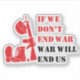 The phrase "If we don't End War, War will end Us" emphasizes the urgent need for peace and conflict resolution in a world where violence and warfare threaten humanity's survival. Such a sticker serves as a provocative reminder that continuous warfare can lead to catastrophic consequences, urging individuals and societies to actively pursue alternatives to violence and work towards lasting peace.