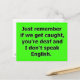 IF WE GET CAUGHT YOU ARE DEAF AND I DON'T SPEAK EN POSTCARD