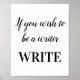 If you wish to be a writer WRITE Motivational Poster designed by Bookles. Customizable modern black text on white. Great for your home office / writing desk or space. Motivational for writers, authors etc.