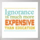 Multicolors text design reads "Ignorance is much more expensive than education" on education awareness T-shirts, mugs, buttons, bags, cards, stickers, key chains, and other items for educational professionals, teachers, parents, or anyone who values the importance of a good education!