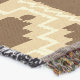 Classic Aztec tribal pattern with a striated, Ikat woven texture - Dark chocolate brown accented with cream on a warm beige / camel tan background