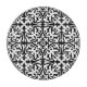 Digital reproduction of a damask medallion pattern with a striated, Ikat woven texture - White on a black background