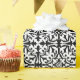 Digital reproduction of a damask medallion pattern with a striated, Ikat woven texture - White on a black background