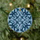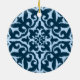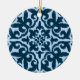 Ikat damask pattern - Dark Indigo and Light Blue Ceramic Ornament