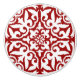 Digital reproduction of a damask medallion pattern with a striated, Ikat woven texture - creamy white on a deep Chinese red background