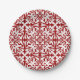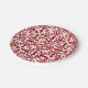 Digital reproduction of a damask medallion pattern with a striated, Ikat woven texture - Creamy white on a dark lipstick red background
