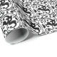 Digital reproduction of an Art Nouveau damask pattern with a striated, Ikat woven texture - Black on a white background