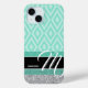 Ikat Pattern with Monogram - teal green black Case-Mate iPhone Case