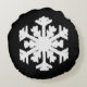 Ikat Snowflake - Black and white Round Pillow