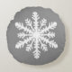 Ikat Snowflake - Charcoal Grey and White Round Pillow