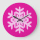 Ikat Snowflake - Fuchsia and ice pink Large Clock