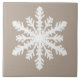 A delicate, lacy snowflake pattern on a solid background with a striated, Ikat woven texture - white snowflake on a deep taupe tan / stone ground