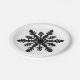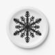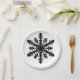 A delicate, lacy snowflake on a solid background with a striated, Ikat woven texture - black snowflake on a white background