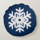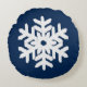 Ikat Snowflake - White and Dark Navy Blue Round Pillow