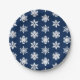 Ikat Snowflakes - White and Dark Navy Blue Paper Plate