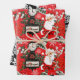 Une vignette vintage avec Père Noël, horloges, bougies et verdure.