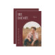 Carte de faire-part moderne de graduation avec cadre en arc rouge pour votre photo. Le texte dit "IL L'A FAIT."