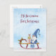 The words "I'll be gnome for Christmas" and a bearded gnome sitting on a decorated sleigh with Christmas gifts highlight this punny holiday postcard. Text is fully customizable.