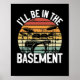 This funny drummer musician drumsticks rock handhorns design shows ill be in the basement . Perfect for musicians who loves playing a drum kit or drum set with bass and snare drum in a band on stage as a music lover in difficult times . The design features a drum set or drums kit .