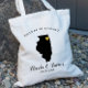 Un sac cadeau de bienvenue mariage pour les visiteurs en dehors de la ville à votre mariage, avec l'image de l'Illinois, avec coeur d'or. Remplissez fourre-tout avec vos goodies favoris.