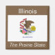 An authentic fine quality image of the flag of Illinois set between the state name and nickname over a flag-colour background.