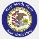 This custom sticker is decorated with the Illinois Great Seal that can be customized with a choice of words above and below that allow you to personalize it with the name of a person, place, position, etc.