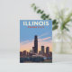 Showcase the heart of the Midwest with this stunning, vintage-style travel postcard for Illinois! This design features a dramatic, stylized Chicago skyline at sunset or twilight, with towering skyscrapers casting their silhouettes against a vibrant sky of blue, orange, and pink. It perfectly represents the Prairie State's dynamic urban center. With the bold, retro text "ILLINOIS PRAIRIE STATE," this art piece is ideal for Chicago natives, architecture enthusiasts, urban travelers, and anyone who loves classic American travel posters. Send a piece of the Windy City or frame it as a modern piece of wall art!