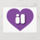 This postcard features a vibrant purple heart containing the bold, white, rounded, lower case letters il, a playful abbreviation for Illinois, the prairie state.