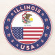 Badge of Illinois with flag of Illinois and flag of USA colours, rounded shape.