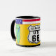 US Route 66, commissioned in 1925 and the last portion of Route 66 was decommissioned by the federal government in 1984. 2,448 miles from Chicago to Los Angeles through eight states: Illinois, Missouri, Kansas, Oklahoma, Texas, New Mexico, Arizona, and California. John Steinbeck, author of "The Grapes of Wrath," called Route 66, the "Mother Road." Get Your Kicks On Route 66, just be sure you've got your coffee in one of these mugs!