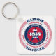 The Illinois State Keychain has a circular typography design with red, white, and blue colours on a white background. The text includes the state's name, capital, state abbreviation, resident's name, region, time zone, geographic coordinates, the year of its statehood, and the country - The United States of America. Unique patriotic gift idea.